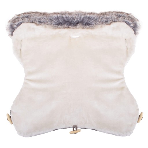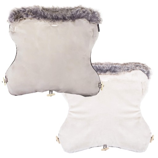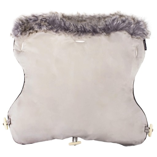 внутрішня частина муфти обшита приємним на дотик матеріалом для повного комфорту в руці батьків під час прогулянок на свіжому повітрі. Хутро навколо не тільки красиво виглядає, але і захищає від холоду. Зовнішній матеріал не вбирає воду, а наповнювач зберігає тепло всередині.