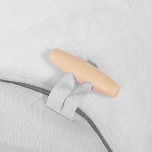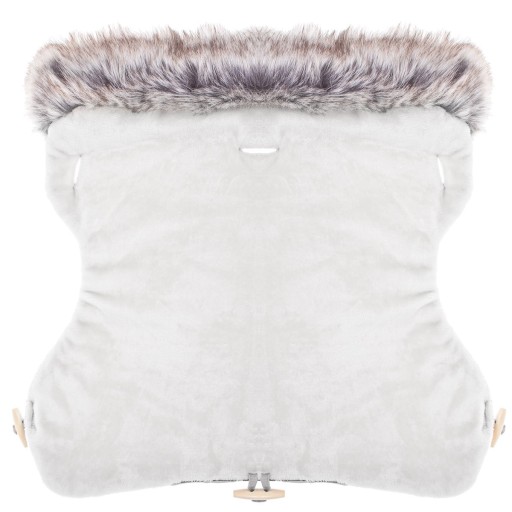 внутрішня частина муфти обшита приємним на дотик матеріалом для повного комфорту в руці батьків під час прогулянок на свіжому повітрі. Хутро навколо не тільки красиво виглядає, але і захищає від холоду. Зовнішній матеріал не вбирає воду, а наповнювач зберігає тепло всередині.