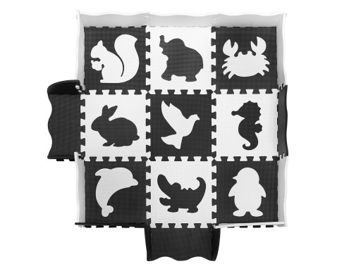 Пазл/килимок чудово замінить килим у дитячій кімнаті. Використовуйте як килимок для навчання повзання та ходьби, а також під час повсякденного відпочинку. Це відмінна м'яка підкладка для ігор, забезпечує дитині комфорт і захищає її в разі падіння. Завдяки контрастним і розвиваючим візерункам сподобається навіть найменшому малюку. Корисний на кожному етапі свого розвитку. Вони будуть корисні як для вивчення світла, форм і кольорів.