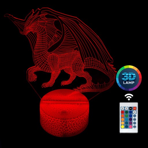 Нічник Smok 3D LAMP LED світить 16 кольорів (пульт), 7 кольорів з кнопкою на основі (це лампа останнього покоління). Світлодіодна лампа може світити одним фіксованим вибраним кольором (залежно від вашого вибору) або змінним режимом (плавно змінюючи відтінки або пульсуючи). Лампа не гріється, є можливість регулювати інтенсивність світла (підсвічування та затемнення - перші дві кнопки зліва на пульті).