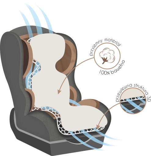 Антипітний вкладиш з 3D-розпірної сітки обов'язковий для кожного батька, який піклується про здоров'я та комфорт своєї дитини. Використання інноваційної технології забезпечує оптимальну температуру тіла дитини. Завдяки використанню 3D-розпірної сітки вкладиш забезпечує відмінну вентиляцію, що захищає шкіру дитини від потертостей і виразок.