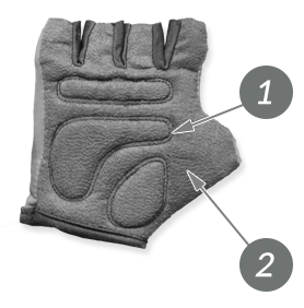- Знизу рукавички оброблені спеціальним матеріалом, який забезпечує хорошу амортизацію і дозволяє дитині міцно тримати кермо.