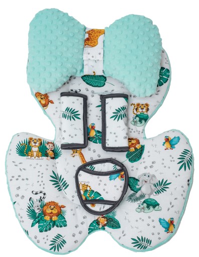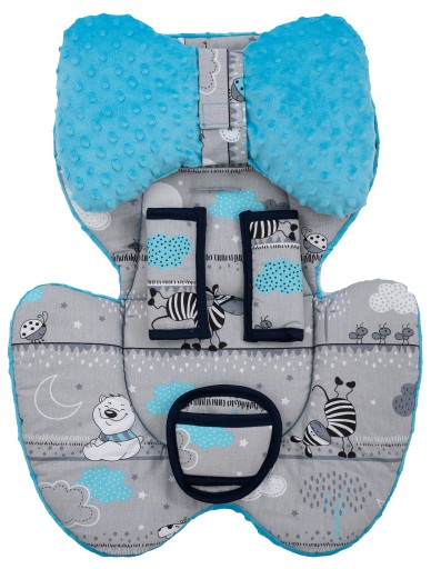 Двостороння вставка для сидіння групи 0+ (0-13 кг) з 100% бавовни в різних візерунках і кольорах і одного кольору з тканини коляски типу LEN, з іншого боку в поєднанні з тканиною MINKY WITH BUBBLES. Всередині наповнена м'якою грілкою, її можна використовувати з двох сторін.