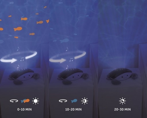 Проектор CODY - це реалістичний підводний світ. Перетворіть кімнату вашого малюка на чарівний підводний світ із рухливими хвилями та плаваючими на стелі рибками, слухаючи розслаблюючі звуки океану. Програма 3 Step Sleep Допомагає вашій дитині заснути, знижуючи анімацію в 3 кроки. Краб-проектор має 3 заспокійливі мелодії для засинання: океан, серцебиття або колискові. Світло, а також мелодії проектора вимикаються автоматично через 30 хвилин. Коли дитина починає плакати, краб вмикається автоматично, заспокоюючи дитину без необхідності входити в кімнату батькам. Він стане ідеальним супутником для сну для дітей будь-якого віку. З проектором ваш малюк почуватиметься безпечно та комфортно, а заспокійливі мелодії та звуки заколисатимуть малюка. Блакитний підводний світ скрасить кімнату і допоможе дитині заспокоїтися та розслабитися перед сном.