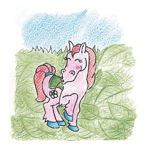 Тепер покладіть під папір білі картонки з візерунками для обведення, проведіть по них олівцем вибраного кольору, і у вас будуть готові квіти, цятки, крапки, зигзаги та інші візерунки, які зроблять небо хмарнішим, траву квітчастішою, а тканину сукня унікальна..