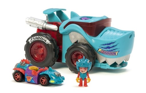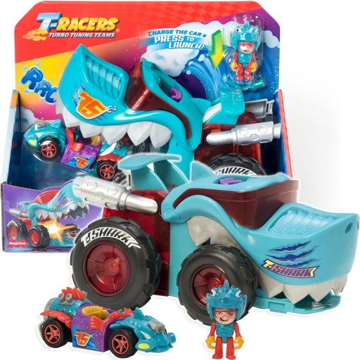 Познайомтеся з чудовим транспортним засобом Mega Wheels, завдяки якому ви зможете взяти участь у дивовижних гонках. Потужні колеса та передня частина автомобіля (у формі голови акули) прокладуть шлях до фінішу. Водій T-Shark — єдиний Racer Velocifish. Крім того, в задній частині Mega Wheels є спеціальний відсік для аксесуарів водія.В автомобілі T-Racer, в пащі хижака, натисніть кнопку і починайте гонку на величезній швидкості! Нехай переможе найшвидший і найнеприборканіший автомобіль!