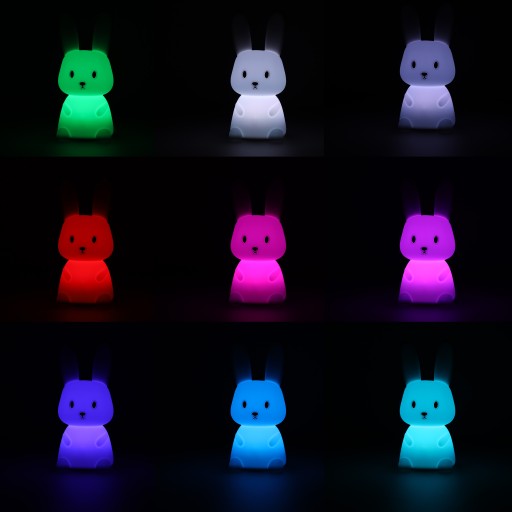 Лампа маєдва режими освітлення- постійне світло теплого білого кольору та кольорове змінне світло (RGB). Щоб перемикатися між режимами або вимикати світло, просто торкніться кролика рукою.