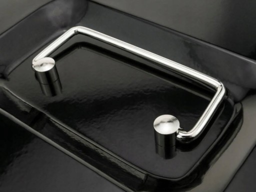 Він має кришку, встановлену на двох внутрішніх міцних петлях, і оснащений хромованою ручкою, встановленою в поглибленні кришки, що дозволяє складати кілька касет одна на одну.