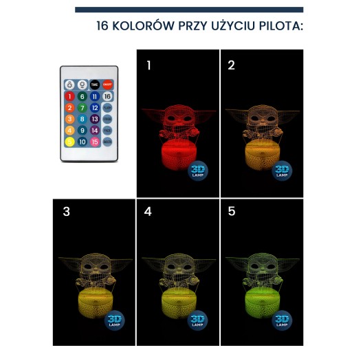 Приліжкова лампа 3D LAMP складається з гравірованого оргскла, вирізаного лазером, з роздруківкою, обраної основи (*чорної, *білої або *напівпрозорого активного кольору - на цьому аукціоні основа напівпрозора), кабелю USB, пульта дистанційного керування з батарейкою . Основа світильника виготовлена з ABS-смол з нековзкими накладками. Лампа може живитися двома способами - за допомогою кабелю USB або 3х батарейок АА (Батарейки необхідно купувати окремо).