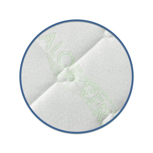 Трикотаж Aloe Vera створений завдяки поєднанню високоякісної, приємної на дотик, бавовняної матрацної тканини та екстракту ALOE VERA (у вигляді фінішу). Алое Віра — особливий вид лілії, відомий століттями, який має заспокійливі властивості. Це рослина з протизапальними властивостями та прекрасний засіб, який регулює та підтримує правильний pH шкіри.