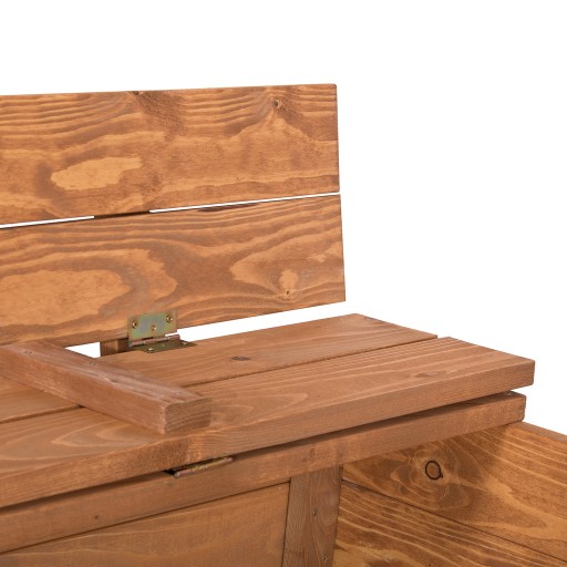 Дерев'яна пісочниця - ідеальне рішення для домашнього саду. Пісочниця оснащена практичною кришкою, яка при відкритті перетворюється на дві розкладні лавки зі спинкою. Все це зроблено з деревини сосни, яка була просочена (захищена від гниття, цвілі та комах). Пісочниця вміщує приблизно 180 кг піску. Cao легко зібрати. Іграшки в набір не входять.
