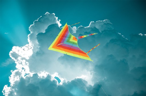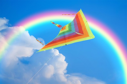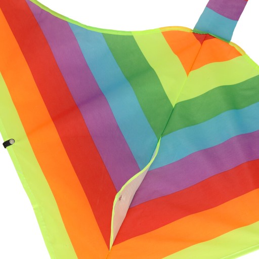 Гарний різнокольоровий повітряний змій у формі трикутника. Виготовлений з нейлону.