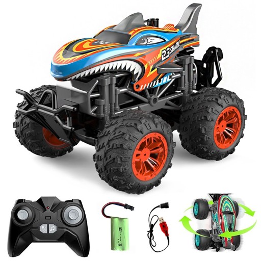 Трюковий автомобіль у масштабі 1:18, танцюючий автомобіль з вогнями, що обертається на 360 градусів, автомобіль-монстр з головою акули