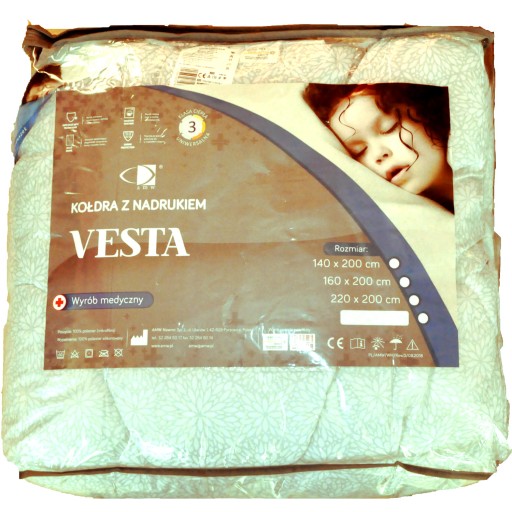 VESTA codra характеризується як м'якістю, так і високою еластичністю. Порожнисті поліефірні волокна, які використовуються як наповнювач ковдри, дуже легкі та створюють відчуття пухнастості. Вони чудово зберігають тепло, рівномірно по всій поверхні. Ковдра довго зберігає свою форму, оскільки холлофайбери надзвичайно міцні та стійкі до зминання. Вони також мають протиалергічні властивості та запобігають осіданню пилових кліщів. Вироби можна прати в пральній машині і сушити механічним способом.