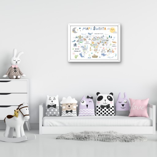 Карта світу стане чудовим подарунком на день народження дитини, школяреві з нагоди початку навчального року, подарунком дошкільнику або придбанням без приводу як елемент декору дитячої кімнати.
