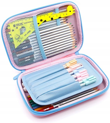 - Висока місткість - багатокамерний, 3 незалежних шару; широко розкрита блискавка, зручна для виймання канцтоварів; може вмістити до 60 ручок.