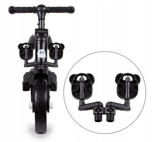 - простий і швидкий спосіб перетворити велосипед на балансир або триколісний велосипед без необхідності використання інструментів