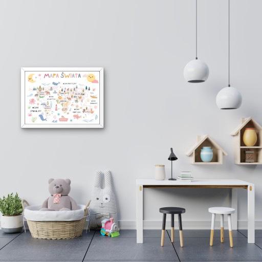 Карта світу стане чудовим подарунком на день народження дитини, школяреві з нагоди початку навчального року, подарунком дошкільнику або випадковою покупкою як елемент декору для дитячої кімнати.