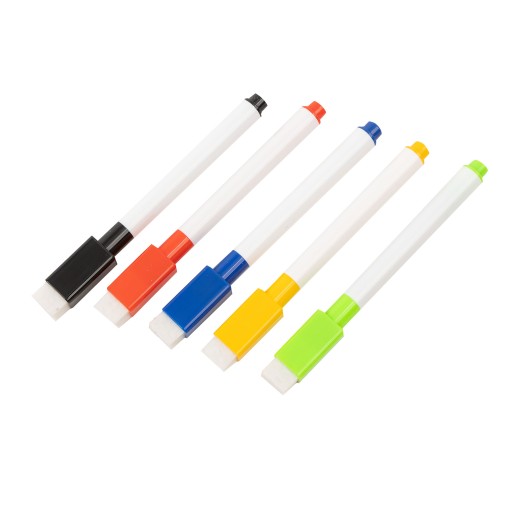 • 5 кольорових маркерів для сухого стирання