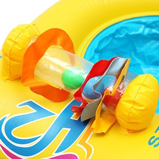 До колеса прикріплені різнокольорові гримлячі кульки, які урізноманітнюють веселощі та спонукають дитину вчитися плавати.