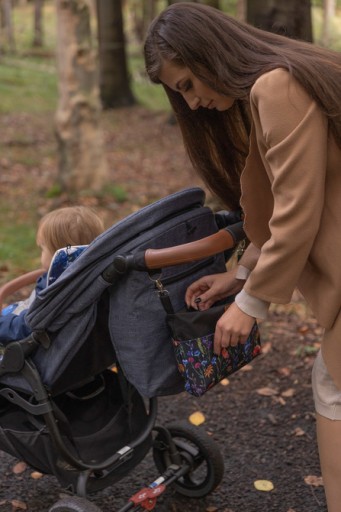 Органайзер для коляски - менша альтернатива сумкам, в які вміщаються всі необхідні речі. Ідеально підходить для прогулянок, шопінгу або подорожей. Має два відділення спереду, а всередині дві великі кишені, оброблені гумкою. Сао закривається на блискавку. Органайзер виготовлений з міцної водонепроникної тканини. У комплект входять ручки для кріплення органайзера до рами коляски.