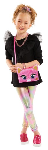 Гаманець Metallic Mood Purse Pets має розміри приблизно 10,8 см (В) x 15,8 см (Ш) x 6,4 см (Г). Включає 3 батарейки AAA Duracell.
