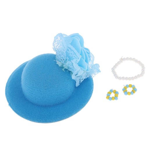 Вінтажний капелюх-котелок, намисто, браслет для лялькового одягу, синій