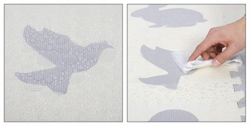 Пазл легко чиститься. Розлиті напої або залишки їжі можна легко видалити, не турбуючись, що вони проникнуть в їхнє покриття. Просто протріть бруд вологою ганчіркою, і килимок знову чистий.