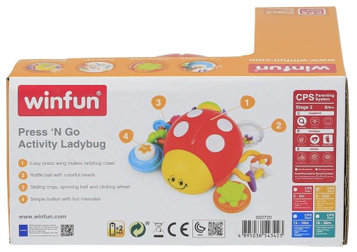 Крім того, іграшка має елементи брязкання, а функціональна кнопка активує радісні мелодії.