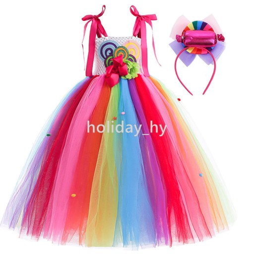 Випадок Маленькі дівчатка Candy Land Rainbow Tutu Princess Birthday Halloween Christmas Party Candy Costume Sugar Headband, Custom Made Colorful Candy Dress, Perfect Candy Land Theme Party, Candy Rainbow Face Dress, Halloween, Carnival, Birthday Gift, Three Birthday Boiling, rick or treat, одягатися, косплей, різдво, косплей, сценічне шоу, фотографія, конкурс, перша вечірка, танець, весільний прийом