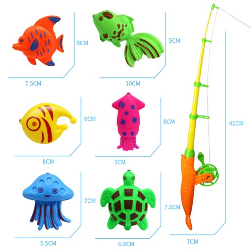 Гра «Рибалка» допоможе утримати увагу дітей і різні види іграшкових рибок яскравих яскравих кольорів.