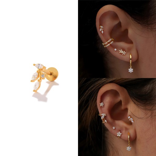 AIDE Crystal Tragus Stud Earring Зміїний хрящ Пірсинг 16G Helix Lobe Earring Labret For Women Zircon Brinco Jewelry Gifts