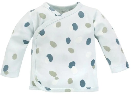 - Він виготовлений зі 100% м'якої бавовни м'ятного кольору, прикрашений ніжним принтом з цяточок блакитного, зеленого та крю, тож ваш малюк буде із задоволенням носити його з перших днів життя.