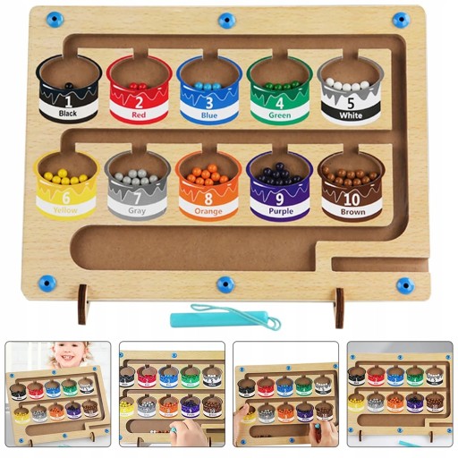 Ця магнітна іграшка-лічильник виготовлена з дерев'яних матеріалів, гладка поверхня, без задирок. За допомогою нашої іграшки-магнітного кольорового та цифрового лабіринту він ідеально підходить для вдосконалення розумових здібностей дітей, спритності рук та очей у всіх аспектах сенсорної чутливості та координації.