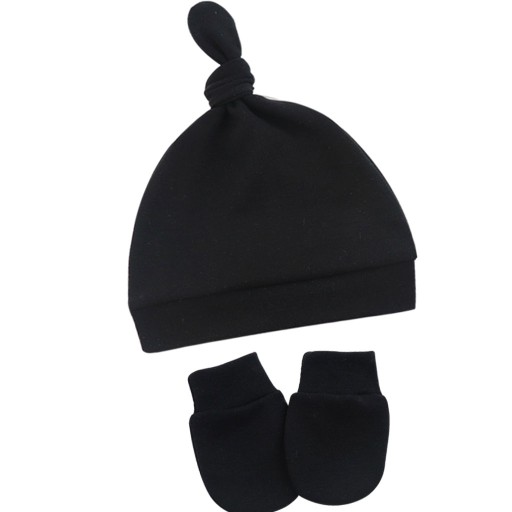 Бавовняні шапочки та рукавички для новонароджених Шапочки на вузликах чорні