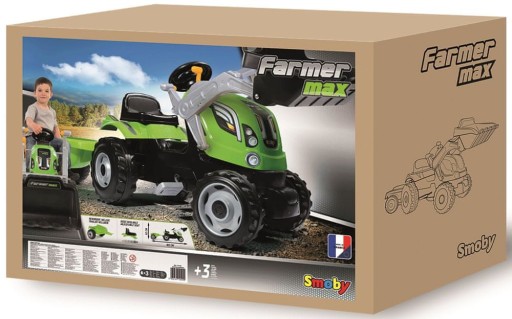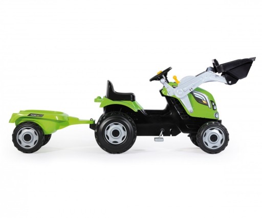 Педальний трактор зеленого кольору в комплекті з причепом Żychych.Регульоване сидіння,стабільна і міцна конструкція,гудок,новий дизайн.