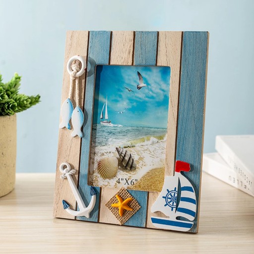 особливість Колір: як показано Матеріал: щільна дошка Розмір: приблизно 22,00X17,00X2,00 см/8,65X6,68X0,79 дюймів. Фоторамка розроблена в морському стилі, завдяки чому ваш стіл може виглядати делікатніше та красивіше. Дизайн простий і елегантний, який може створити свіжу, природну і комфортну атмосферу. Ви можете надіслати його своїм друзям, родині та колегам, і їм це сподобається. Нижня частина фоторамки стійка, тому вона може стійко стояти на столі для домашнього використання. Родзинка вашого інтер'єру, ідеально доповнює наявну колірну гамму і створює теплу атмосферу.