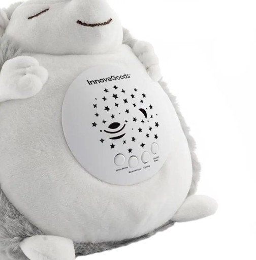 М'який плюшевий їжачок зі світлом і музикоюідеально підходить перед сном, оскільки допомагає дітям заспокоїтися та заснути. Видає білий шум і різноманітні мелодії, які готують дітей до спокійного сну. Він має заспокійливий місяць і кольоровий зірковий проектор, який можна витягнути з іграшки для чищення.