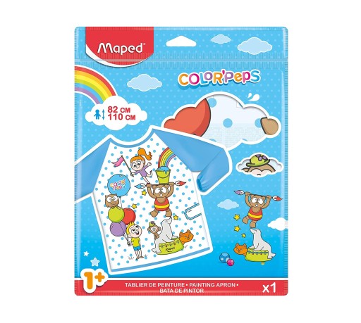 Захисний фартух із серії Early Age, необхідний для перших занять найменших художників. Призначено для дітей віком від 18 місяців до 5 років. Підходить для зросту від 82 до 110 см. легко надягати. Ззаду застібається на 3 липучки. М'які довгі рукава з поліестеру не сковують рухів дитини. Передня і задня частина з безпечного, екологічно чистого PEVA. Водонепроникний, легко чиститься/миється. Фартух упакований в саше з замком. 1 пакетик.