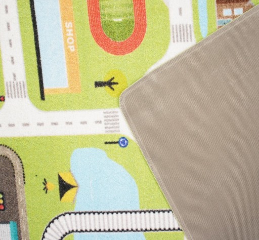 Зелений вуличний дитячий килимок неодмінно сподобається нашим дітям. Мотив вулиць у кремово-зелених тонах прикрасить і зігріє інтер'єр дитячої кімнати. Короткий ворс килима дозволяє легко підтримувати його в чистоті. Нековзке прогумоване дно не дає килимку рухатися, забезпечуючи міцну підтримку маленьким ніжкам.
