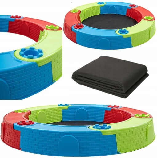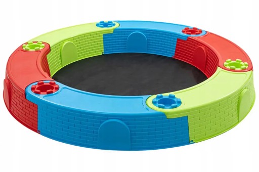 Пісочницю потрібно зібрати, скріпивши 6 елементів, а потім поставити на рівну рівну поверхню.
