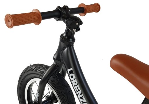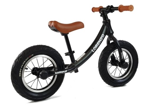 Велосипед встановлений на надувні колеса, завдяки чому пересування на ньому безпечне і комфортне. Рама кросу зроблена зі сталі, а диски – з алюмінію, завдяки чому конструкція дійсно стійка. Сідло виконано з екошкіри коричневого кольору, завдяки чому воно виділяється на чорному каркасі автомобіля. Те ж саме стосується і ручок - завдяки розміщенню на них плетених стилізованих вирізів ручка дитини не зісковзне з них.