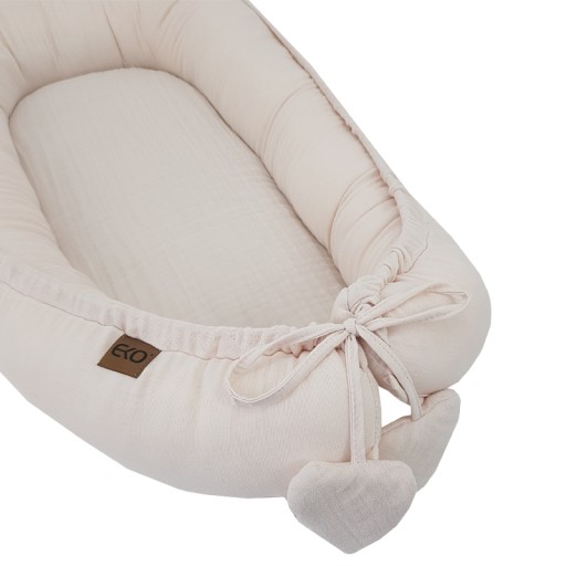 Зав'язки, які використовуються в коконі, дозволяють ідеально регулювати поверхню для сну, потягнувши або послабивши їх. Завдяки цьому наш кокон «росте» разом з вашим малюком.