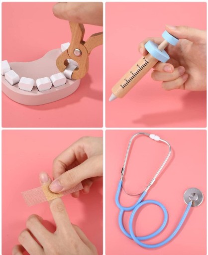 Нирка/лоток пластикова, елементи стетоскопа металеві. Решта елементів дерев'яні. Аксесуари великі і мають закруглені краї. Немає ризику, що ваш малюк пораниться або спіткнеться об якийсь предмет.