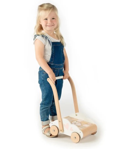 Важливо: ця коляска з кубиками не призначена для навчання ходьбі, але вона дає дітям впевненість і мотивацію рухатися для подальшого розвитку своїх моторних навичок. Тому перед тим, як почати грати з коляскою з блоками, переконайтеся, що ваша дитина може ходити самостійно і вільно.