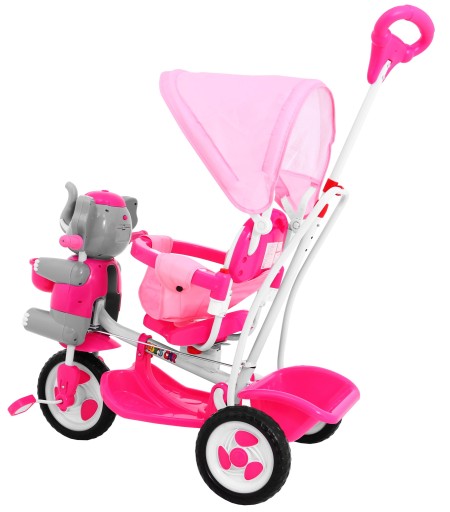 3-х колісний дитячий велосипед Elephant Pink + Звуки + Дах + Бар'єр + Підніжка + Ручка + Полози + Відсік