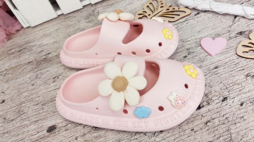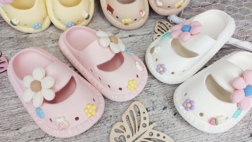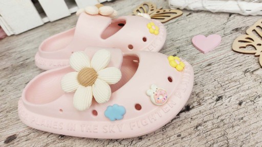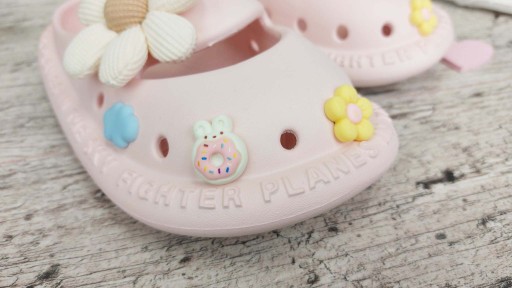Квітка збоку шльопанці, милий зайчик, квітка та хмаринка спереду додають додаткового шарму.