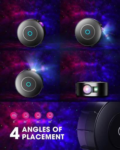 Чотири регульовані напрямки проекції - основа має 4 унікальні кути проекції (30°/45°/60°/180°). Проектор можна розмістити де завгодно, показувати різні атмосфери та отримувати бажаний ефект хмар.