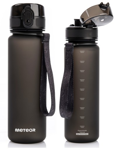 Практична пляшка для води Meteor, яку ви можете взяти з собою на тренування, у спортзал, школу чи подорож на велосипеді. Пляшка прозора з матовим покриттям і протиковзкою поверхнею.