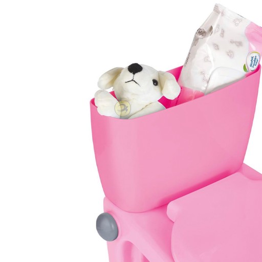 - Горщик зі спинкою, яка полегшує підгузки, ідеально підходить для дітей, які починають свою пригоду з горщиком.